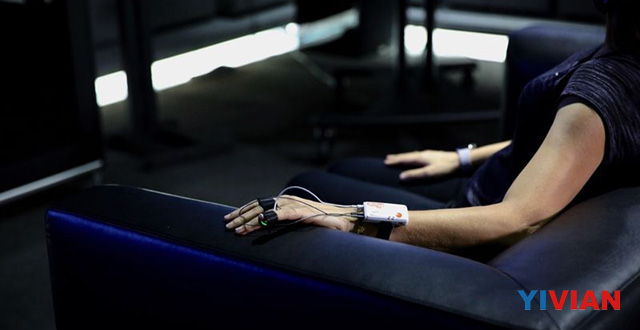 在临时的隔音客厅里,一位女性正坐在一张皮革沙发上非你莫属张文文,她佩戴着64通道EEG脑电极帽,这是一种通常用于测量大脑神经元产生的脑电活动的生物医疗帽。手腕上的追踪器会测量她的心率和皮肤电反应(汗水)非你莫属张文文,指尖上的是脉搏血氧仪,而她的对面则设置了一台热成像相机wepokerAPP。